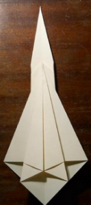 - Далее складываем уже заключительные элементы. Утончается вторая сторона меча. Закрепляем всю поделку, когда загибаем второй, более мелкий ромб.