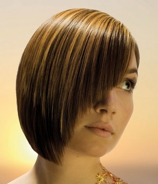 Объем и структуру короткой стрижки прекрасно подчеркнет светлое мелирование на натуральную основу. Фото демонстрирует вам такой вариант мелирования на темные короткие волосы.