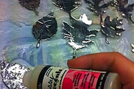 - Покрасьте оставшиеся листья тонким слоем акриловой краской-металлик так, чтобы они казались целиком сделанными из настоящего металла.