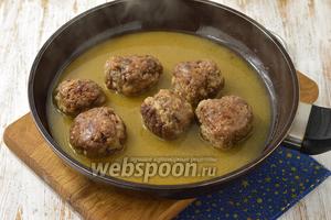 Шаг 10 В конце обязательно добавьте в сковороду небольшое количество воды или бульона и пропарьте котлеты под крышкой на самом маленьком огне 7-10 минут. Это сделает котлетки ещё сочнее.