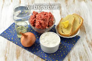 Шаг 1 Для работы нам понадобится свиной фарш — 500 грамм, 1 луковица, батон — 60 грамм, мука — 5 ст. л., вода — 0,5 ст. л., масло сливочное — 1 ст. л., подсолнечное масло для жарки.