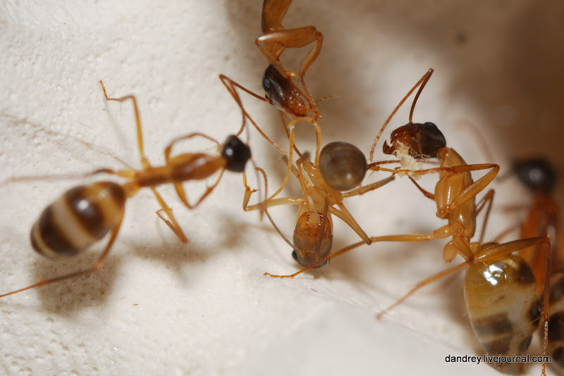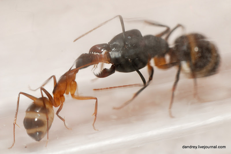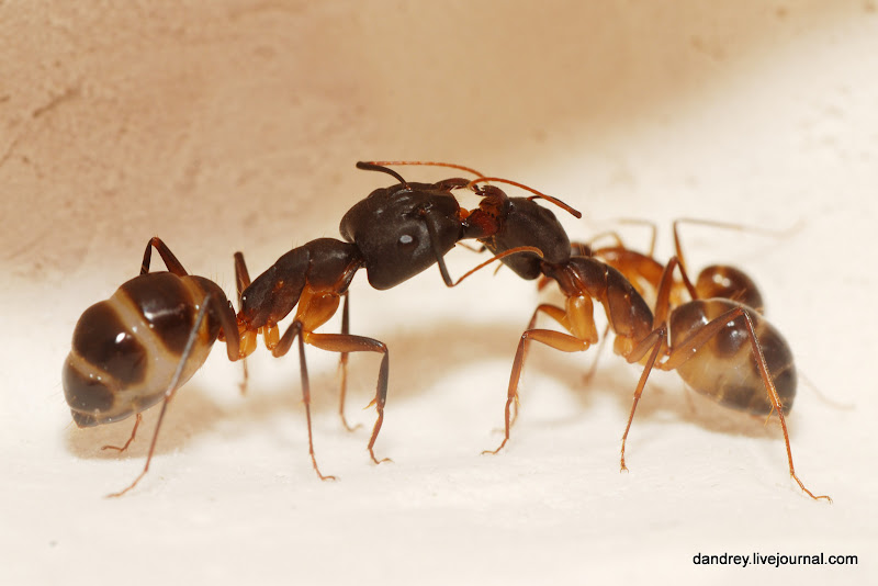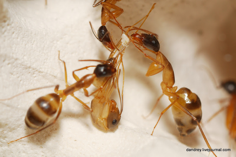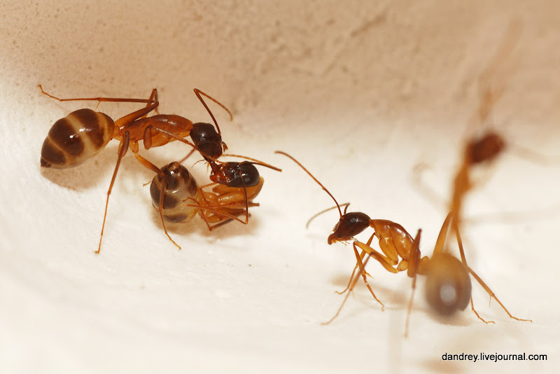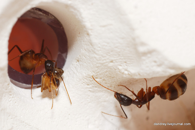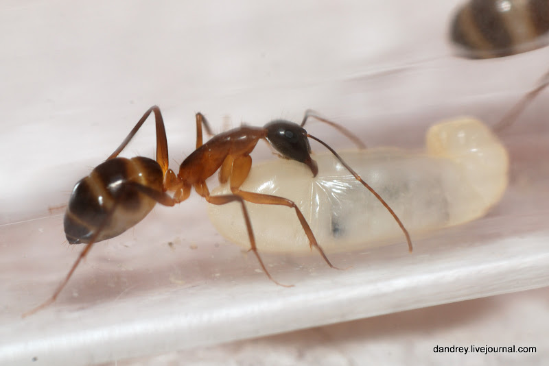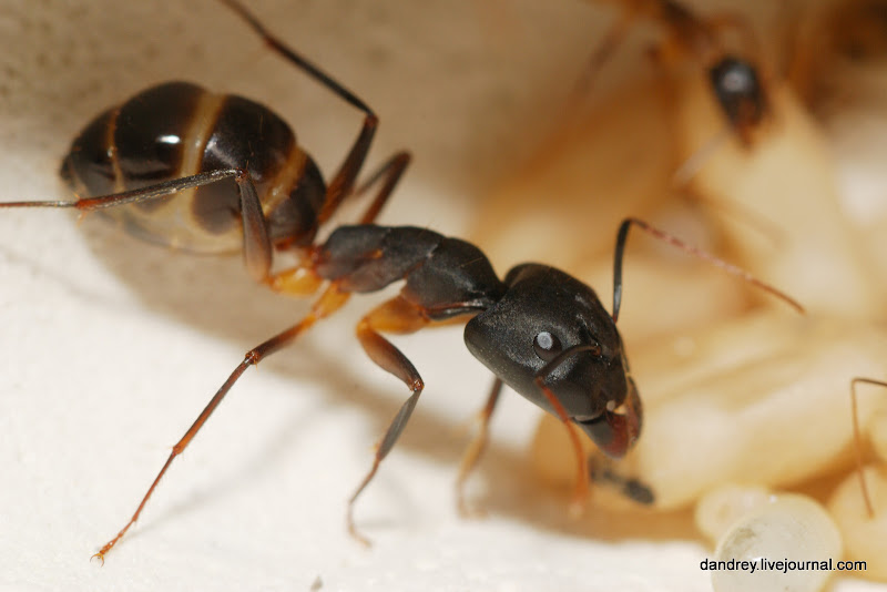 . Через ровное стекло наблюдать и фотографировать муравьёв намного лучше. Наконец-то смог сфотографировать процесс распаковки новорождённого