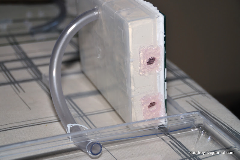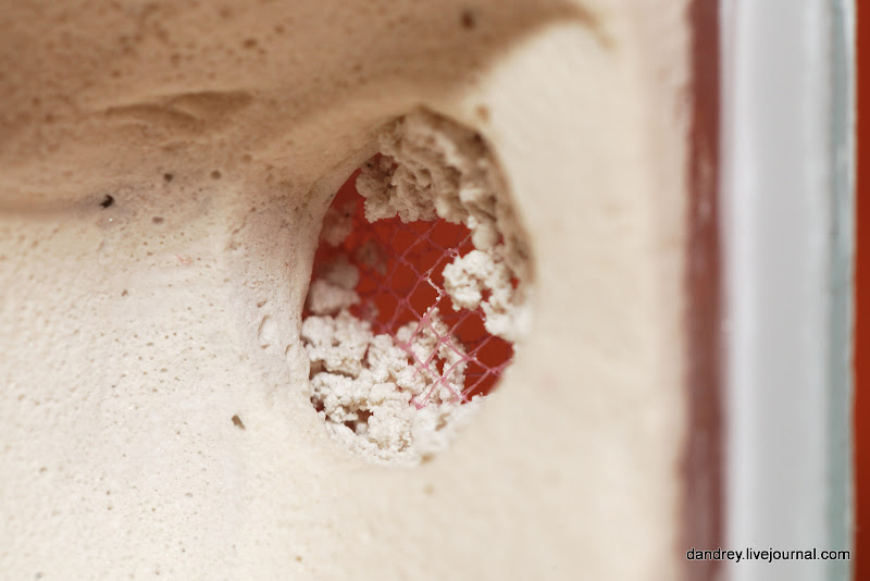 Залепил две нижние вентиляционные дырки. Муравьи набрали свежего алебастра и раза в четыре уменьшили оставшиеся две вентиляционные дырки. Всех куколок и личинок вынесли в трубку, внутри оставили только яйца. Сами тоже сидят внутри. Проходы между камерами довольно большие. Надеюсь что двух отверстий им хватит. По крайней мере копать перестали ![]()