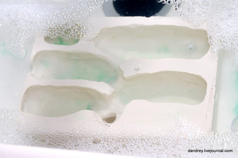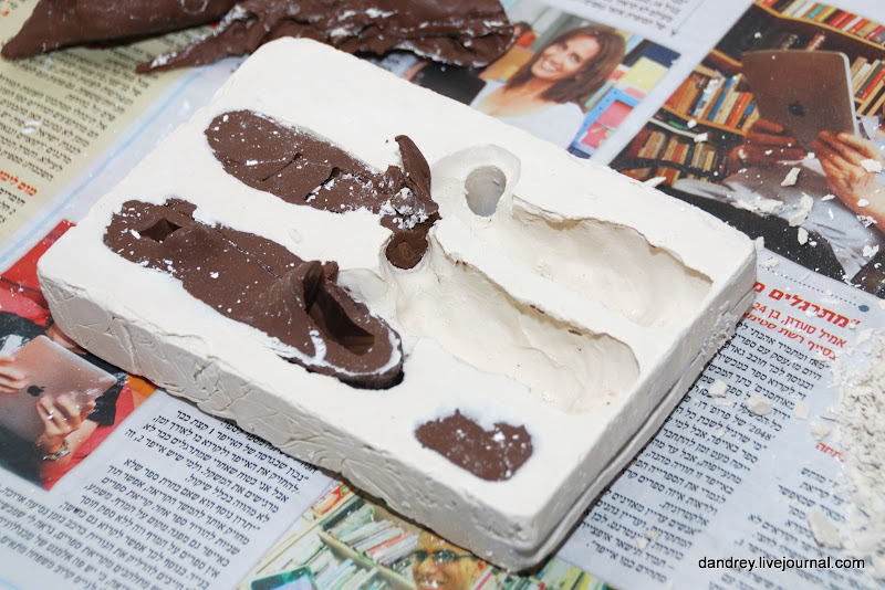 9. Замочил отливку в воде с моющим средством для посуды чтобы вымыть из гипса впитавшийся из пластилина жир. Тщательно сполоснул отливку и оставил на несколько дней просыхать.