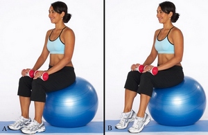 Упражнение 1. Сесть на маленьком коврике на колени, спинку держать ровно, а руки – перед собой прямо. В этом положении садиться на пол попеременно на левую и правую части бедер, делать, пока есть силы.