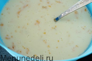 - Смешав муку, специи, молоко и яйца делают панировку.