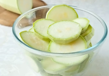 - Выбирать стоит самые молоденькие плоды, имеющие диаметр до 5 см. Такие кабачки не нуждаются в чистке, поскольку их кожица еще тонкая, а внутри нет грубых семян.