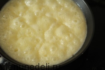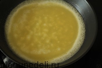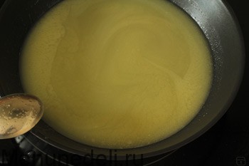 Как только пена начнет коричневеть, сразу снимаем сковороду с огня и ставим дном в воду, чтобы остановить приготовление. Осторожно, не обожгитесь паром.