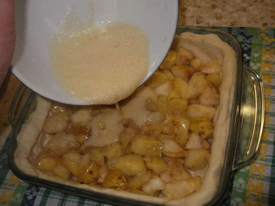 Уложенные дольки заливаем тестом и ставим в духовку выпекать при 180 градусах