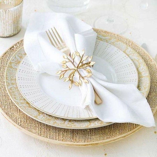 В последнее время все больше хозяек выбирают тканевые салфетки при сервировке стола. Самым простым и популярным способом как сложить салфетки из ткани это использовать специальные кольца. Их, к стати, можно сделать своими руками. Даже простая ленточка, перевязывающая скрученную салфетку, вполне может послужить вместо кольца.
