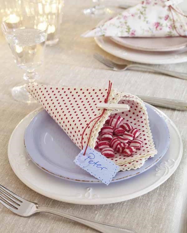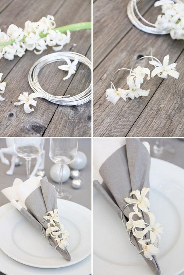 - И еще несколько простых вариантов. Никаких сложных схем, просто сверни салфетку и используй разные украшения.