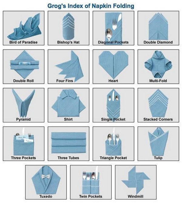 К красиво убранному столу должны соответствовать и салфетки. Если выбор пал на бумажные салфетки, предлагаем несколько интересных и красивых способов как их сложить.