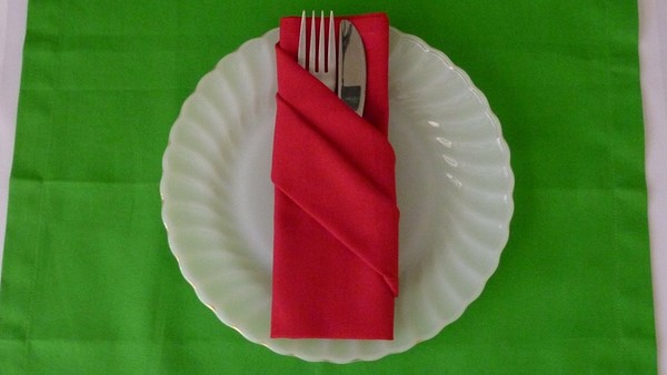 Стоит отметить, что порядок складывания салфеток из ткани и сервировка ими праздничного стола более трудоемкий, чем бумажных и требует несколько более продолжительной подготовки. Начнем с того, что должны быть подготовлены тканевые салфетки - их надо хорошо накрахмалить и погладить. А чтобы тканевые салфетки смотрелись в салфетницах или сосудах эффектно, то можно будет добавить к ним и живые цветы. Эти изделия, сложенные оригинальным образом, желательно, чтоб гармонировали со скатертью. Различные несложные схемы помогут понять, как красиво сложить салфетки из ткани.