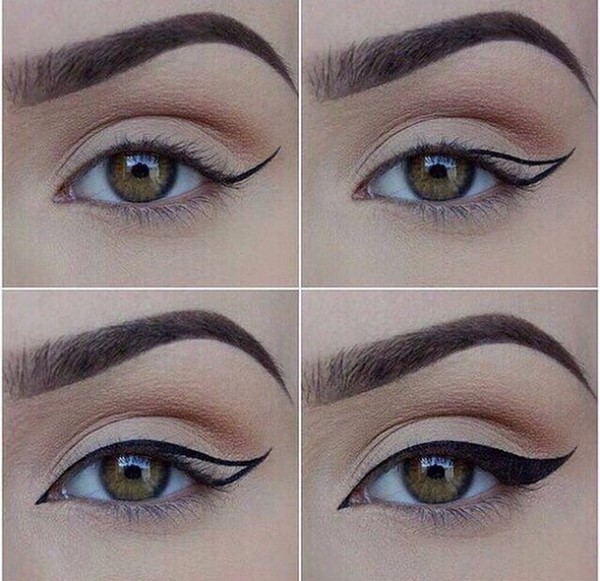 - Если вам сложно нарисовать сплошную ровную линию, то рисуйте ее по частям. Начинайте от внутреннего уголка глаза и проводите к внешнему уголку;