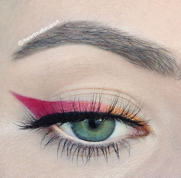 Это могут быть белые стрелки для глаз, модные в этом сезоне синие стрелки или же яркие стрелки на глазах оранжевого и винного оттенков.