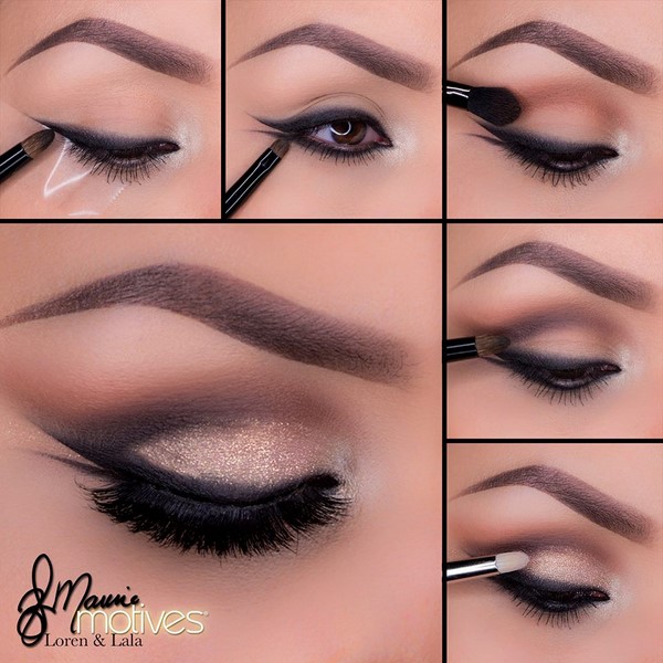 - «Стрелки в стиле smoky eye» акцентируют все внимание на глазах, поэтому больше никакая яркая косметика в макияже не используется.
