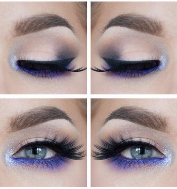 - Голубые и серые радужные оболочки хорошо смотрятся с бронзовой или медной стрелкой. Также подойдёт фиолетовый и коричневый цвета.