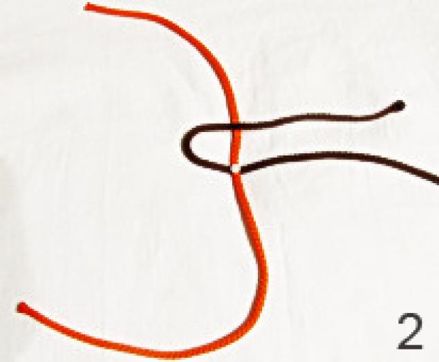 При втором способе положите рабочую нить под узелковую. Обогните ее и выпустите под рабочей нитью.
